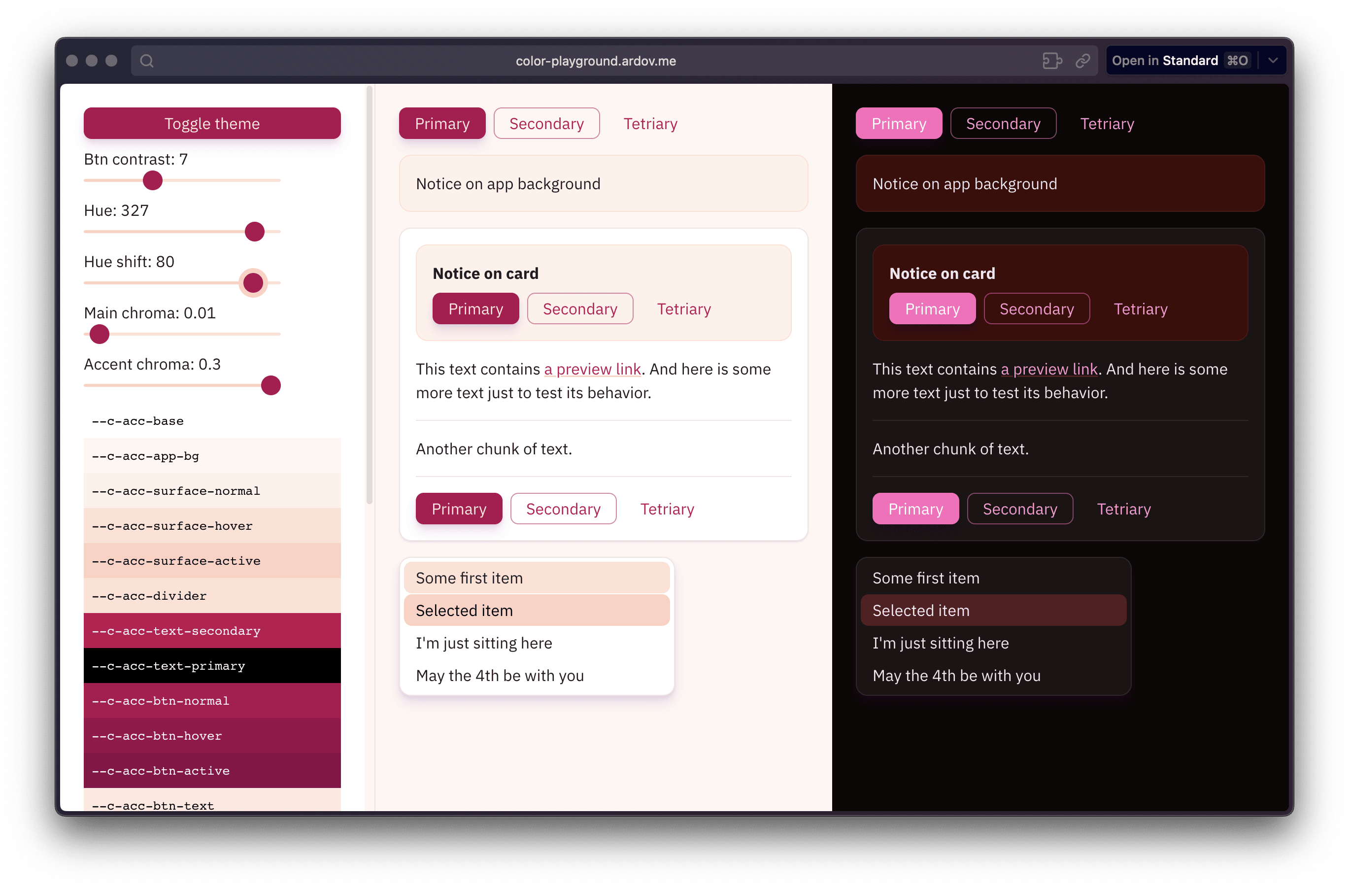 I like taking a look at these issues as they’re a reminder of simply how designed these coloration areas are and the way deep the rabbit gap can go. Earlier than you realize it, you’re designing extraordinarily subtle accessible coloration palette technology instruments.