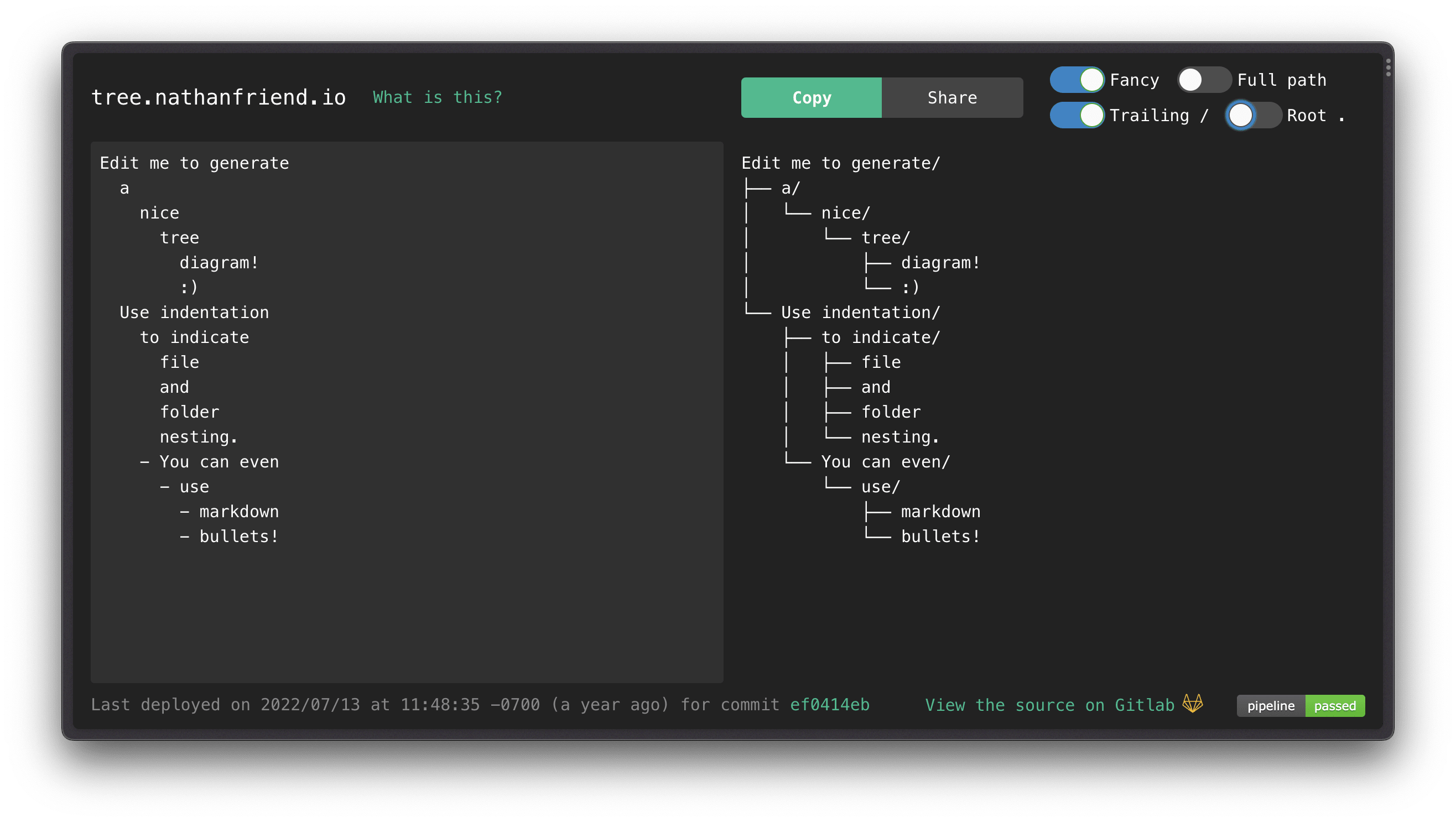 I’m sorry I can’t clarify it, however typically you need to replace supposed textual content to have a bunch of additional particular ASCII characters that higher characterize a file tree.
