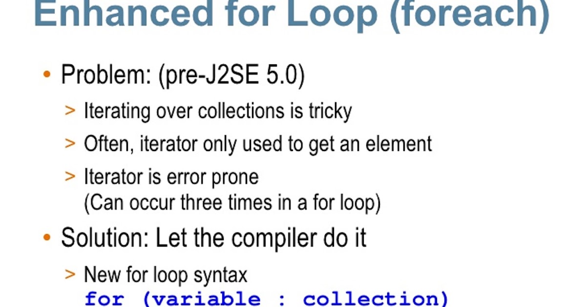 here’s a good abstract of why enhanced for loop was launched in Java 5 and why it’s best to use it, together with syntax and examples of use it for iterating over assortment and array.