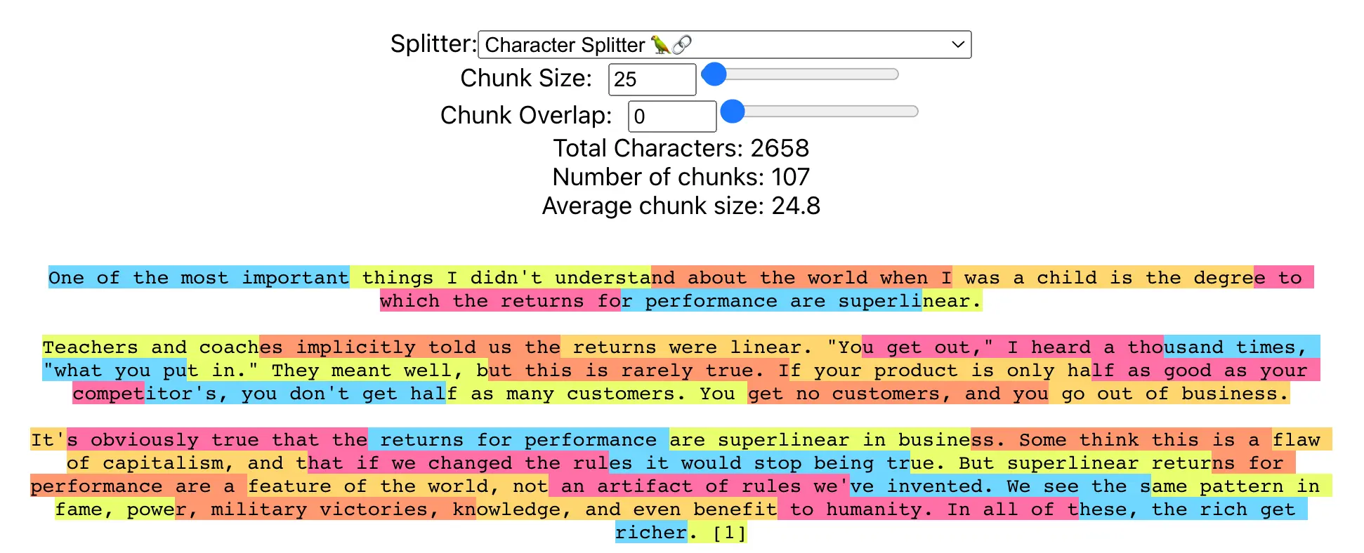 A device to visualise how totally different textual content splitters chunk up textual content.